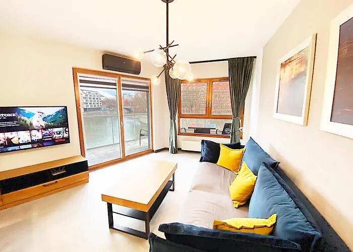 Este apartamento de 35 m^2, Apartimento Bulvar Premium, está situado en el distrito Śródmieście y ofrece un rápido acceso a la Breslavia, que se encuentra a 700 metros. El apartamento dispone de una terraza con vistas al río.